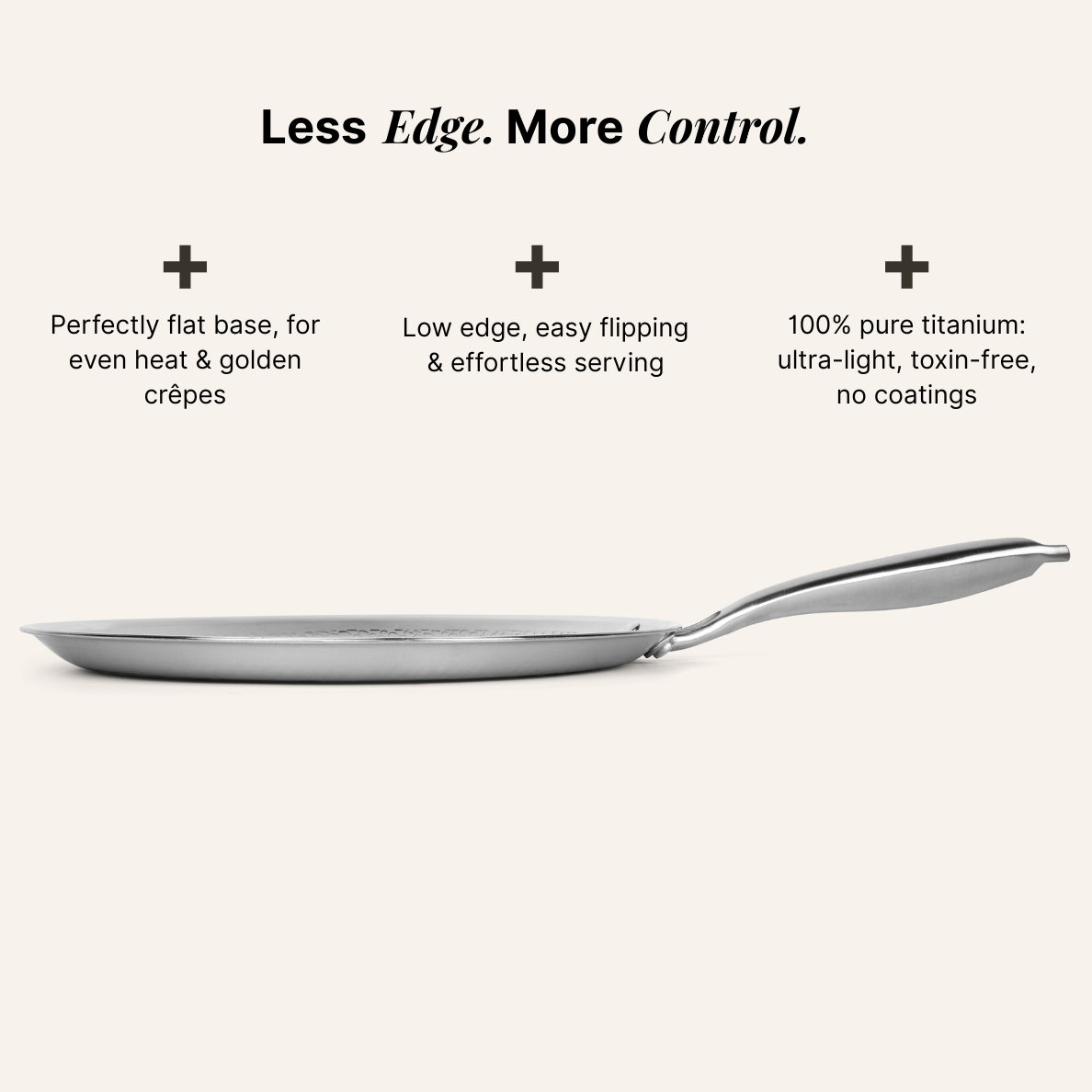 Made from durable titanium for long life, even heat, and natural non-stick. No toxic coatings